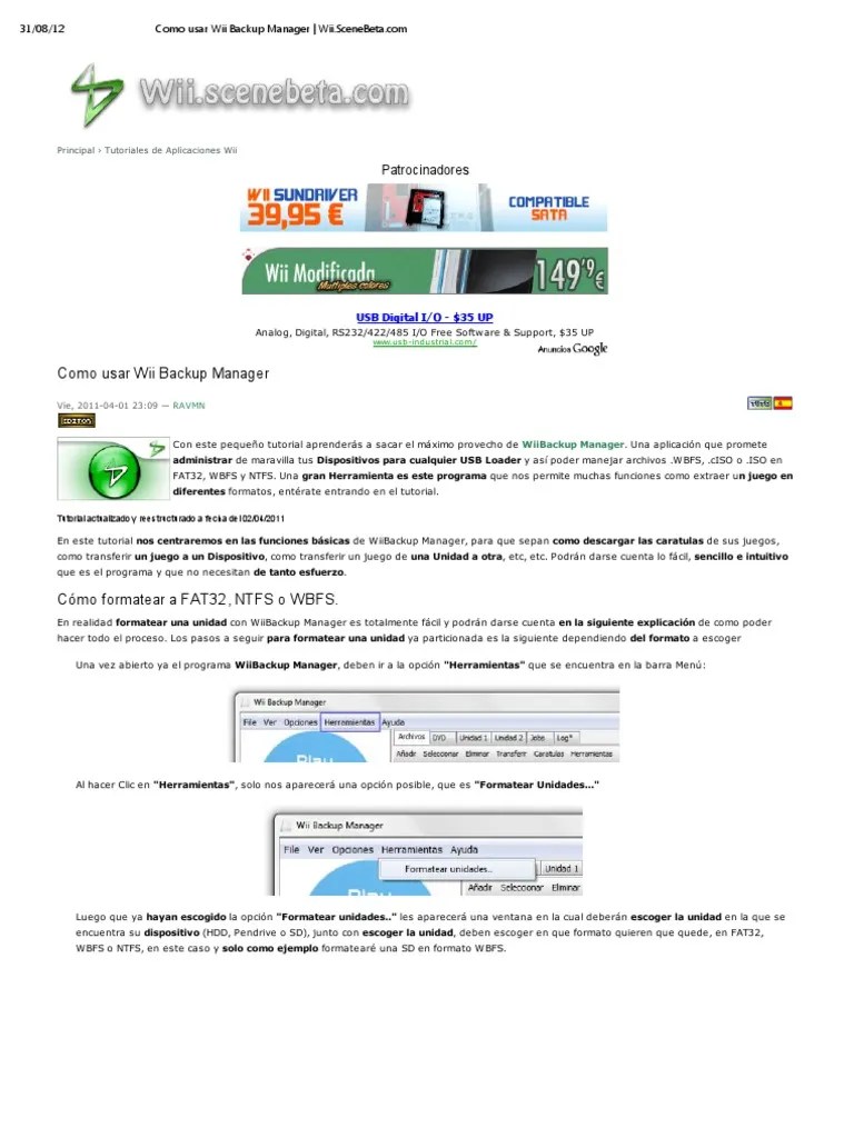 Al iniciar el programa me pide. Wii wbfs manager no me funciona bien no me lee las unidades extraibles solo me enseña agregar archivos ect pero usar una unidad para poner tengo un pc lenovo con windows 8. Te gusta lo portable y deseas conseguir muchos juegos gratis? Descargar la última versión de wbfs manager para windows. Wii backup manager is a program to work with dvd backups, fat32, ntfs and wbfs drives to convert between dvd, iso, ciso and wbfs.